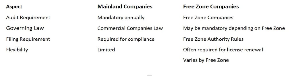 Free Zone vs Mainland Audit Requirements
